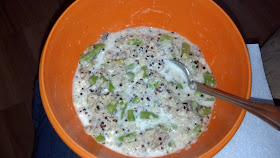Lunch I put in a pot; 1/4 c of quinoa, 1/2 c riced cauliflower, a little onion, mushroom, asparagus cut up, garlic, and boiled it in aver a cup of water for 20 min. Then added a tbsp of butter and cream cheese and a handful of shredded parmesan cheese. So good.
